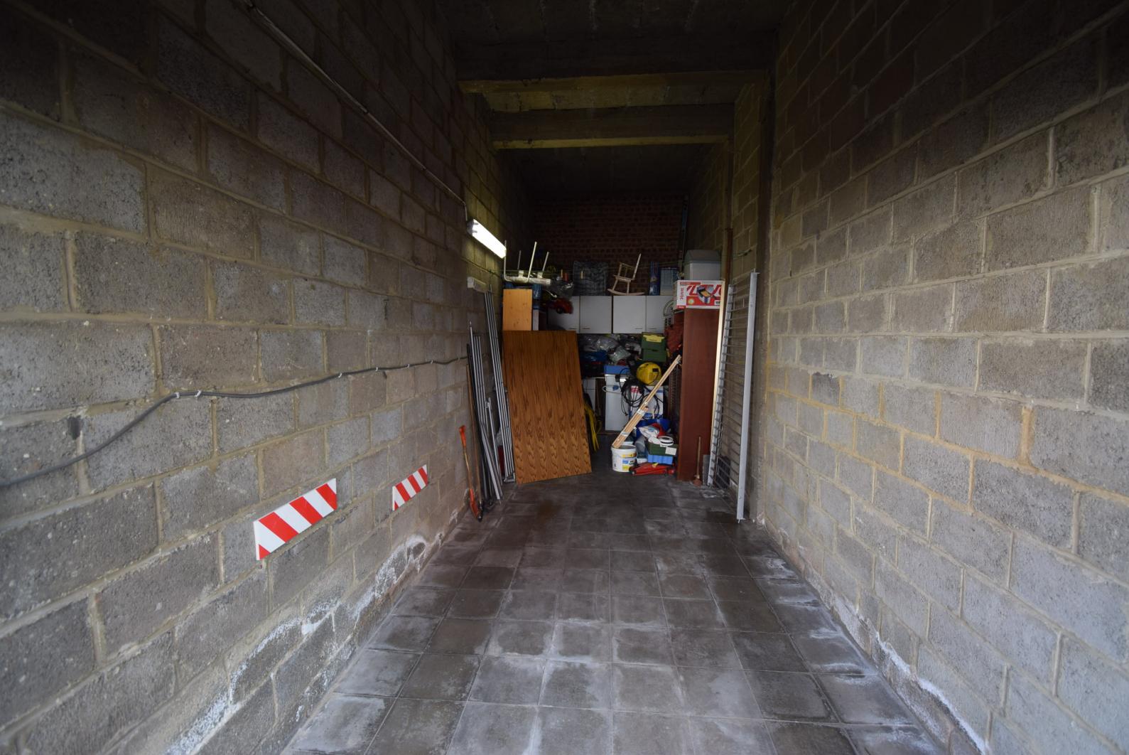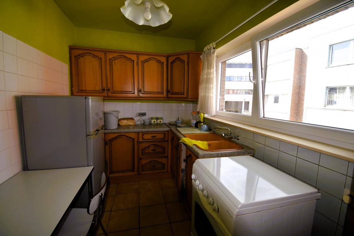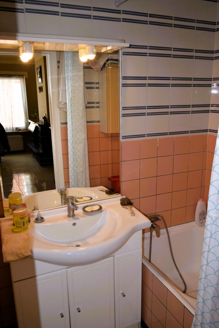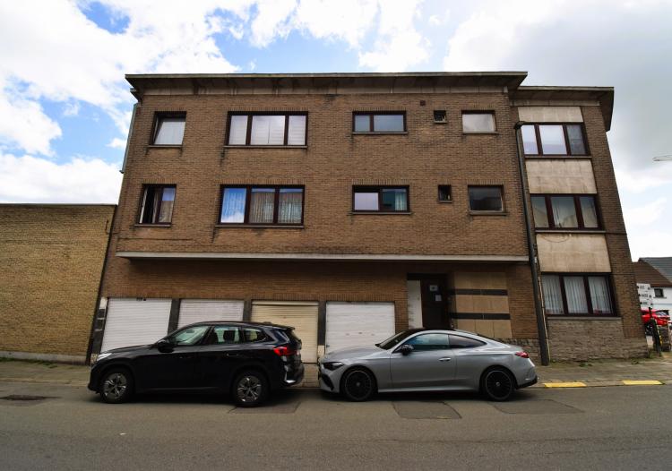 Spoorwegstraat 2, à proximité de la gare de Grand-Bigard: Appartement deux chambres à rafraîchir/moderniser avec une cave et un grand garage de 19m² (2,45m x 7,8m, 3,8m de hauteur) avec porte automatique. Double vitrage PVC, chauffage central individuel au gaz, petit immeuble sans syndic, score énergétique D = pas d'obligation de travaux.
