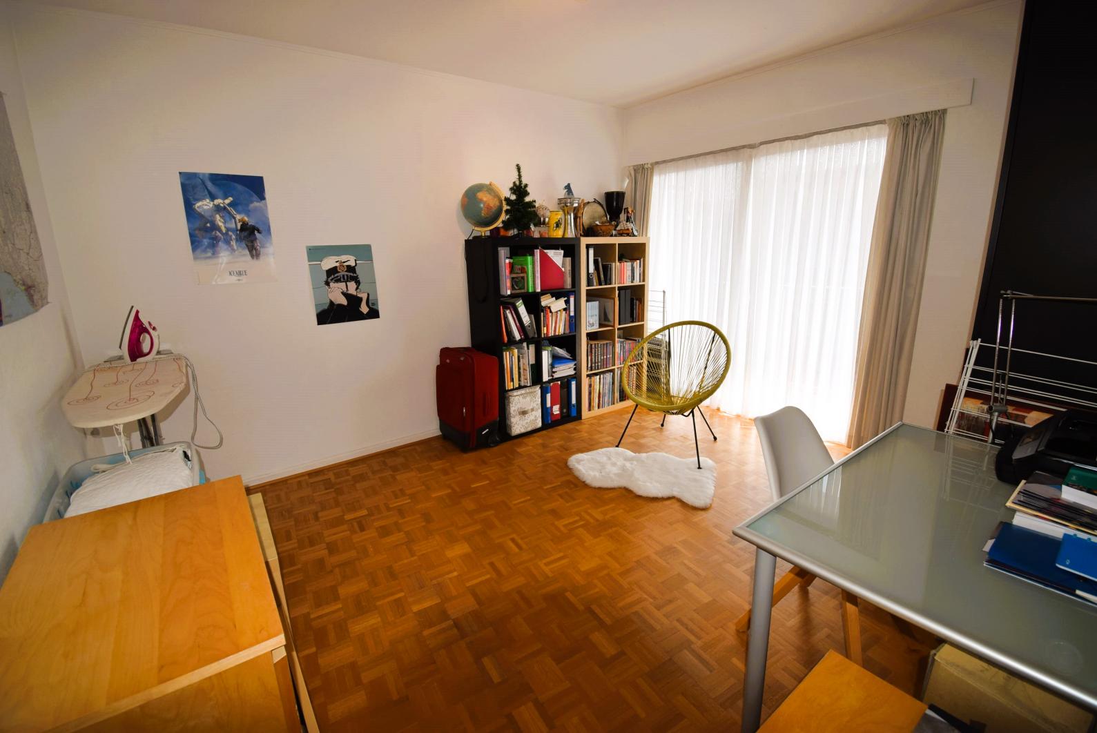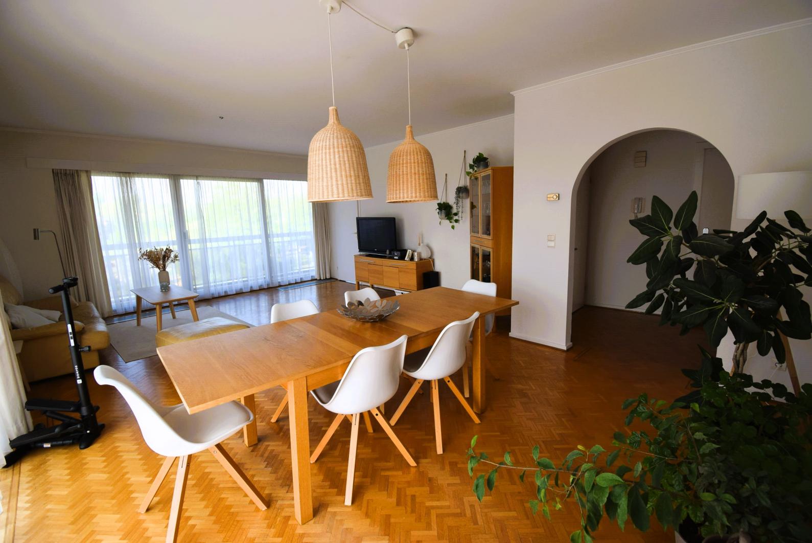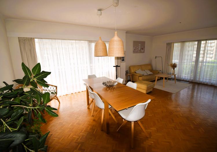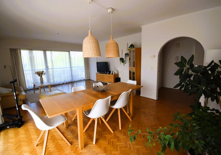 Boulevard Edmond Machtens 151, dans la résidence « Arc-en-ciel » face au Parc du Scheutbos : Spacieux et lumineux appartement trois chambres de 120m² avec deux grandes terrasses de 12 et 23m² avec tente solaire. Trois "vraies" chambres de 15,14 et 13m², porte blindée, installation électrique conforme. Situation résidentielle et verdoyante à proximité de toutes les commodités. Possibilité d'acquérir un garage séparément