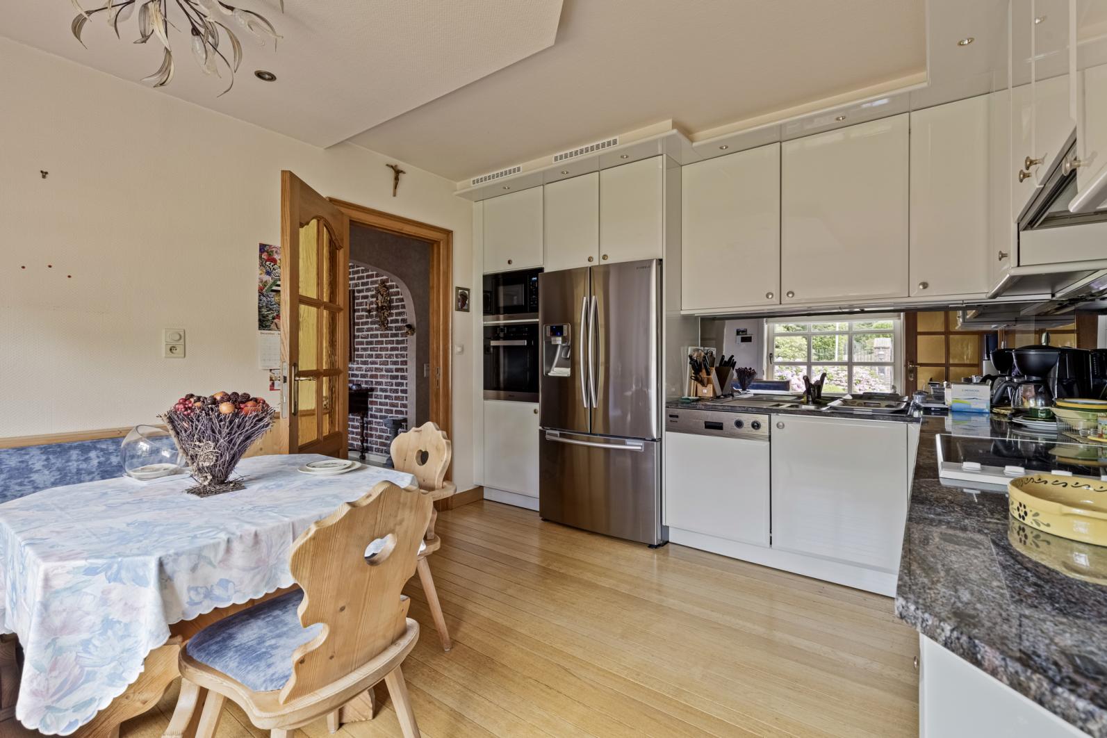 Ruime villa ( bouwjaar 1965) gelegen op een perceel van 15 are 66 ca bestaat uit op het gelijkvloers: een inkomhal met wc , living met OH , super ingerichte keuken, badkamer, wasplaats, slaapkamer, bureel, veranda met open haard en zicht op terras en tuin. Op de eerste verdieping bevinden zich de nachthal en 2 slaapkamers De woning is deels onderkelderd en omvat een wijnkelder met thermostaat. Er is een garage voor 2 wagens en verschillende autostaanplaatsen. De tuin is volledig aangelegd met terrassen, tuinpaden, bbq en tuinhuis. Alle modern comfort , videofoon en rolluiken zijn aanwezig. Dit pand is gelegen nabij het centrum met al zijn faciliteiten.