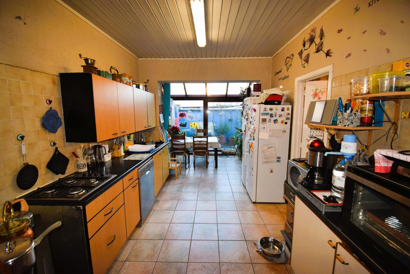 ! Optie ! Woning gerenoveerd in 1996 met een bewoonbare oppervlakte van 170 m², een koer en 2 grote kelders. Momenteel is de woning volledig bewoont door de verkoper, maar stedenbouwkundig betreft het een pand bestaande uit 2 wooneenheden (appartementen) : een gelijkvloersappartement van 60 m2 en een duplexappartement van 85 m2) . Ideaal pand om deels te bewonen en deels te verhuren.