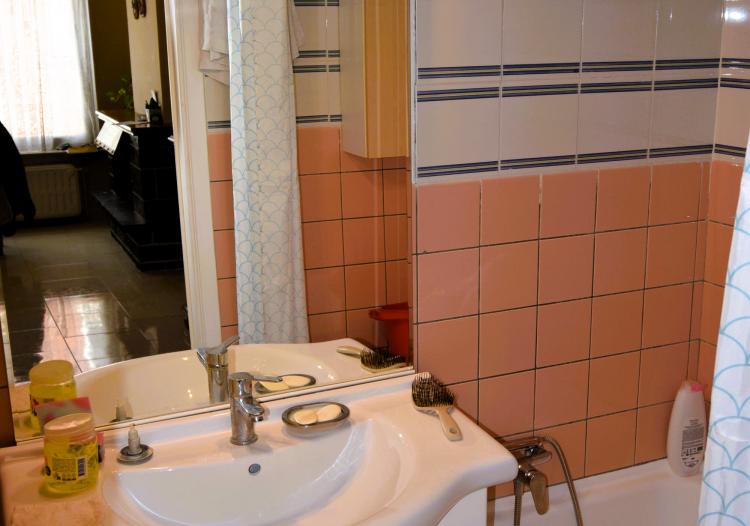 Spoorwegstraat 2, à proximité de la gare de Grand-Bigard: Appartement deux chambres à rafraîchir/moderniser avec une cave et un grand garage de 19m² (2,45m x 7,8m, 3,8m de hauteur) avec porte automatique. Double vitrage PVC, chauffage central individuel au gaz, petit immeuble sans syndic, score énergétique D = pas d'obligation de travaux.