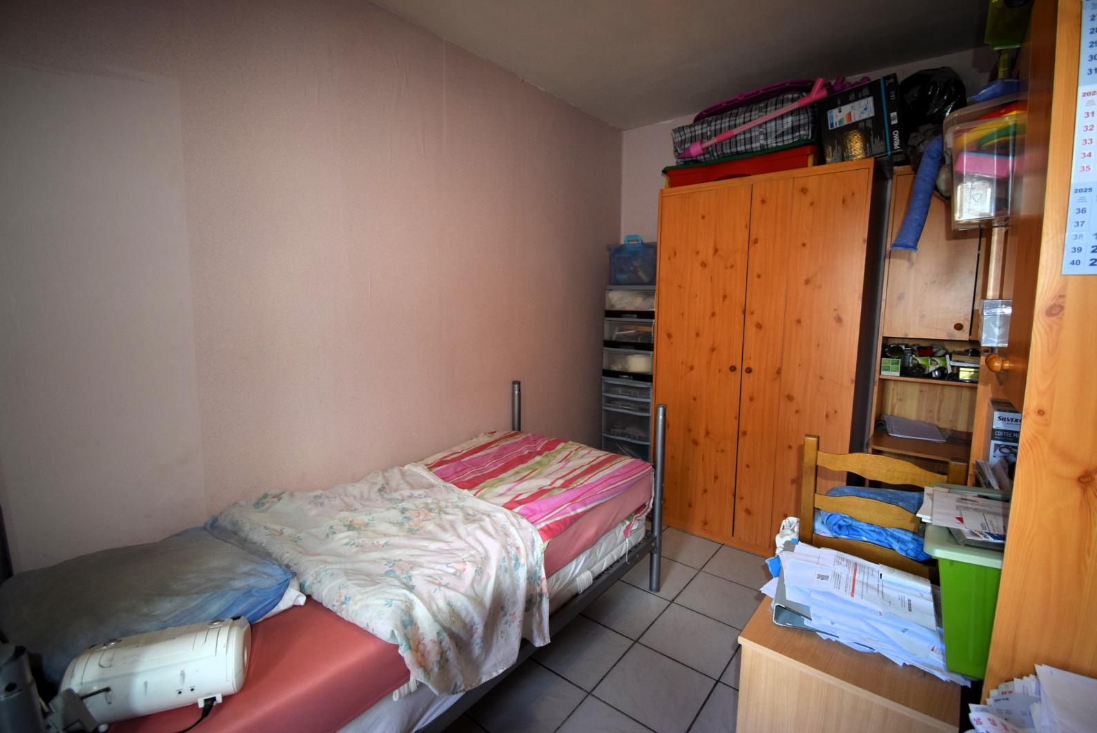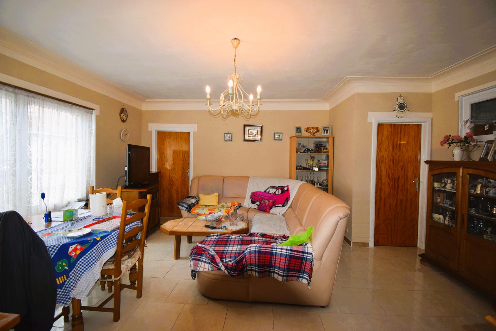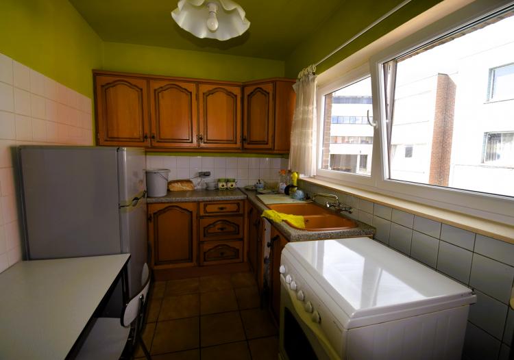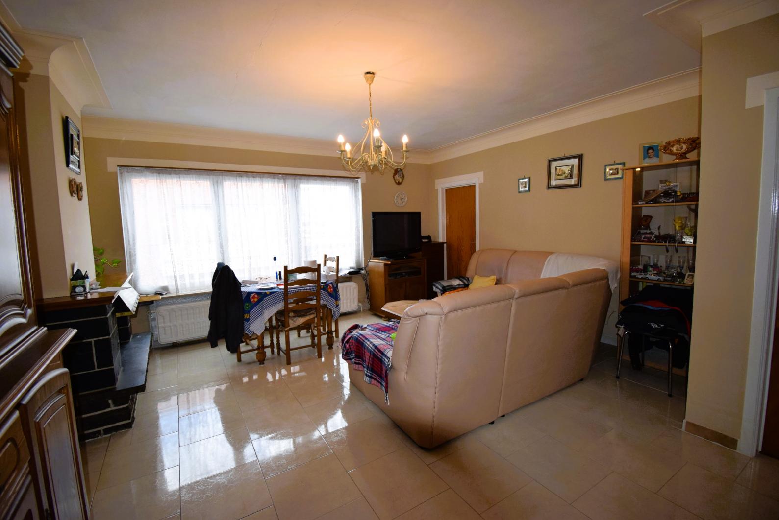 Spoorwegstraat 2, à proximité de la gare de Grand-Bigard: Appartement deux chambres à rafraîchir/moderniser avec une cave et un grand garage de 19m² (2,45m x 7,8m, 3,8m de hauteur) avec porte automatique. Double vitrage PVC, chauffage central individuel au gaz, petit immeuble sans syndic, score énergétique D = pas d'obligation de travaux.