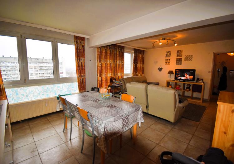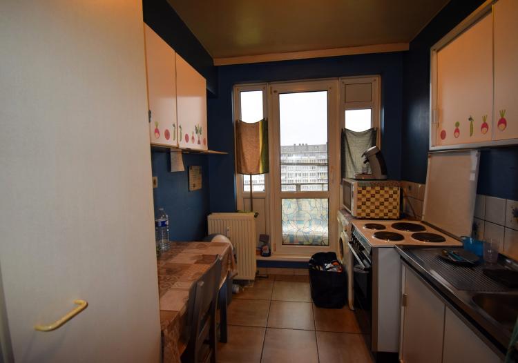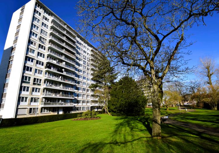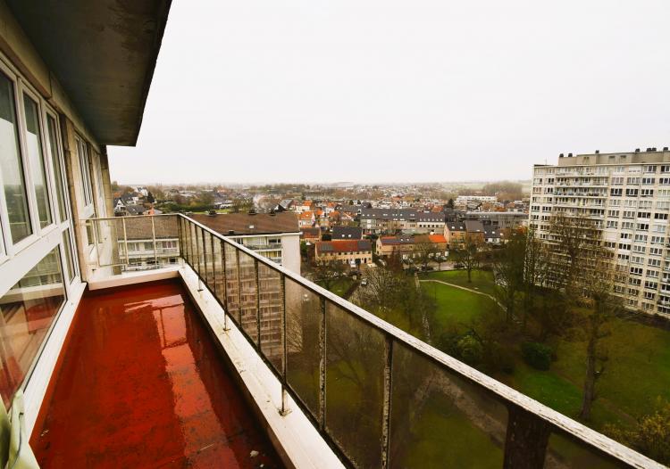 Breughelpark 10, dans le centre de Zellik: Spacieux et lumineux appartement une chambre de 70m² avec une terrasse de 7m² (vue imprenable du 12ème étage) et une cave. Situation calme et verdoyante à quelques pas de toutes les facilités. Score énergétique C = pas d'obligation de travaux