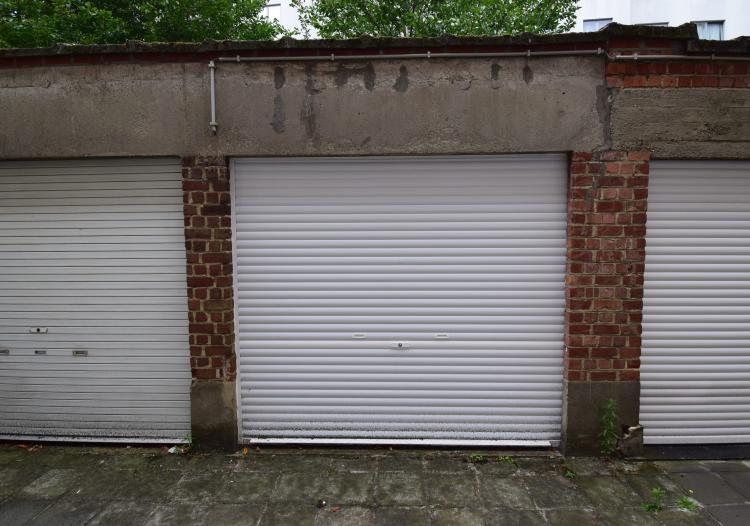 Louis Mettewielaan 59 : Garagebox van 14m² (2,6m x 5,5m) met een hoogte van 1,95m onder poort (2,4m onder plafond).