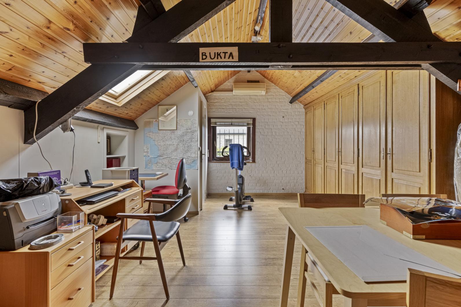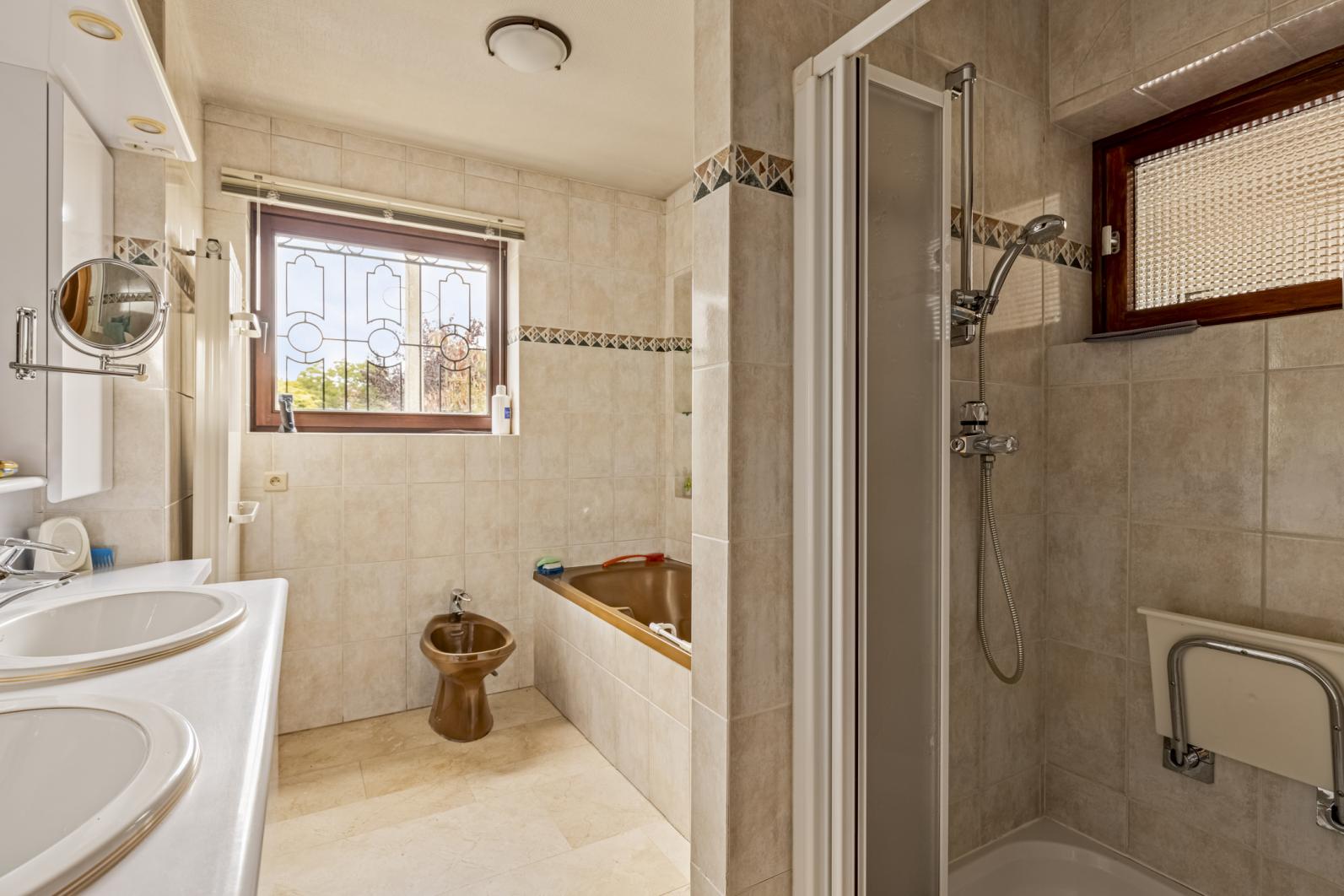 Ruime villa ( bouwjaar 1965) gelegen op een perceel van 15 are 66 ca bestaat uit op het gelijkvloers: een inkomhal met wc , living met OH , super ingerichte keuken, badkamer, wasplaats, slaapkamer, bureel, veranda met open haard en zicht op terras en tuin. Op de eerste verdieping bevinden zich de nachthal en 2 slaapkamers De woning is deels onderkelderd en omvat een wijnkelder met thermostaat. Er is een garage voor 2 wagens en verschillende autostaanplaatsen. De tuin is volledig aangelegd met terrassen, tuinpaden, bbq en tuinhuis. Alle modern comfort , videofoon en rolluiken zijn aanwezig. Dit pand is gelegen nabij het centrum met al zijn faciliteiten.