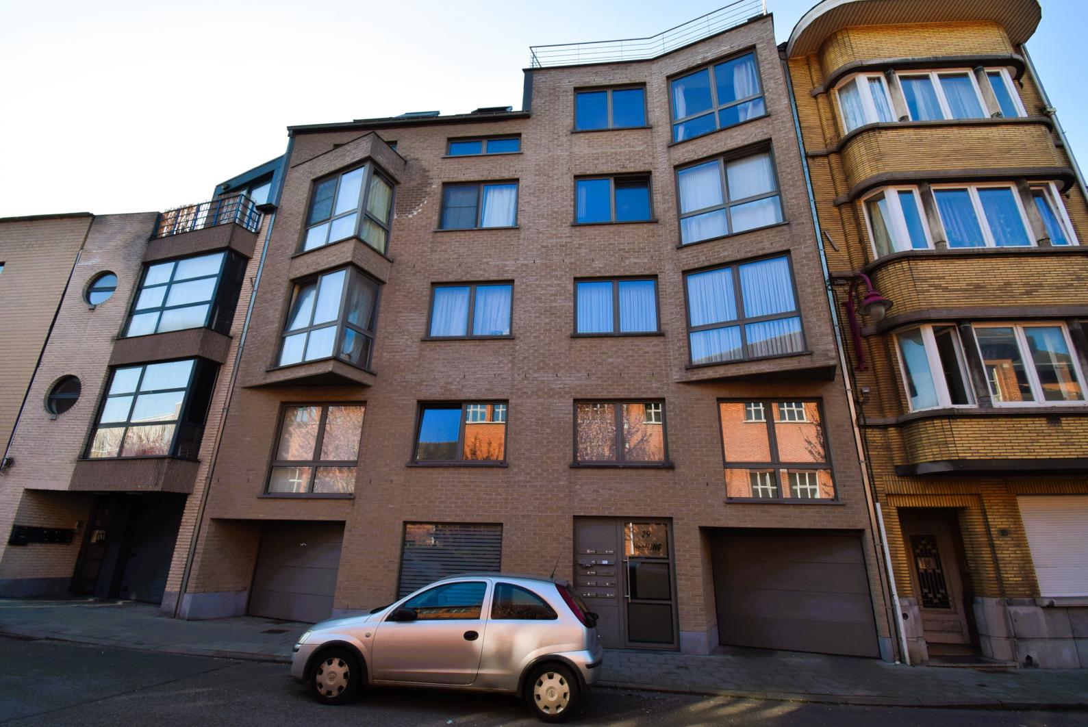 Dokter Charles Leemansstraat 29 : Appartement (100m²) op de eerste verdieping met tuin en autostaanplaats en kelder gelegen in een gebouw van 2008. Het appartement bestaat uit een inkomhal, 2 slaapkamers, wc, badkamer ( bad + douche), wasplaats, een ruime living met ingerichte open keuken met zicht op de tuin. Alle modern comfort is aanwezig (o.a dubbele beglazing, elektriciteit conform, videofoon, gepantserde deur, PEB D+). Het pand is gelegen nabij het centrum van Sint-Agatha-Berchem in een rustige straat, nabij alle faciliteiten.